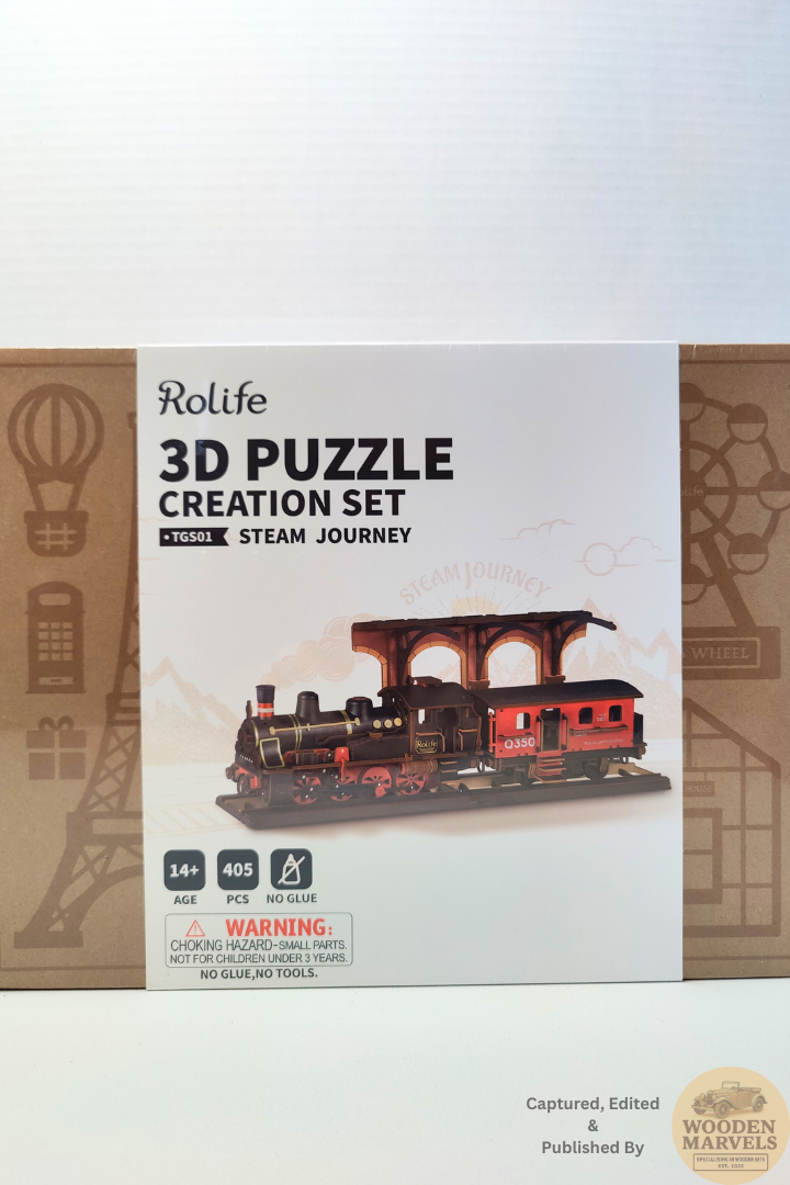 Step into the golden age of steam travel, with this steam journey 3D puzzle by Rolife.